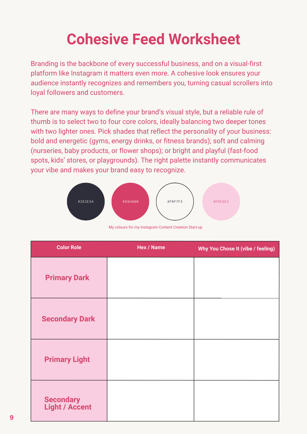 A free, fill-in-the-blank workbook that guides you through 3 simple steps: clear messaging, a strong offer, and a cohesive feed to turn your Instagram into a client-winning brand. Perfect for small business owners, creators, and faceless brands ready to grow and sell with confidence.